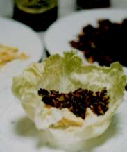 1〜6を個人の好みの割合でレタスの葉に取り、包んで食べる。(味に変化がほしければ、マヨネーズを少しつけてもよい。)