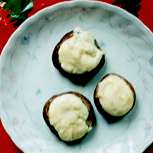 ** このレシピの応用として、最近出回っているエリンギを5ミリ厚ほどにスライスして、マヨネーズに練りカラシを混ぜてかけ、粉チーズをふりかけて焦げ色が着くまで焼いたものも美味しい。 ** New