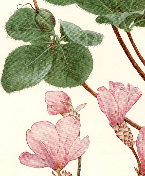 Bright rose pink flowers open in April to May before the leaves.