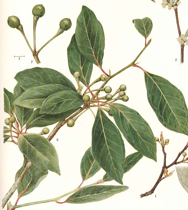 Leaves are alternate, entire, obovate-oblong. The shoots have a fragrant odor.