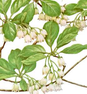 Campanulate yellowish white flowers open in June to July.