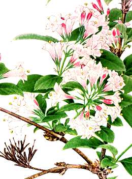 Leaves are opposite, ovate, acuminate at the apex, serrulate with glandular teeth.