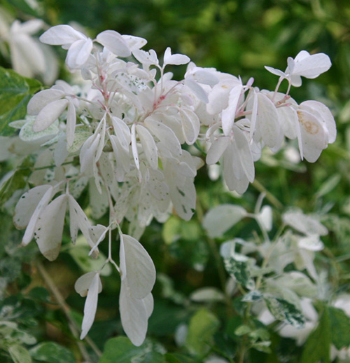 常緑低木。 花は、枝の先端に小さい白い花を咲かせる。花序の下には、 白い苞葉が目立つ。 メキシコ原産。