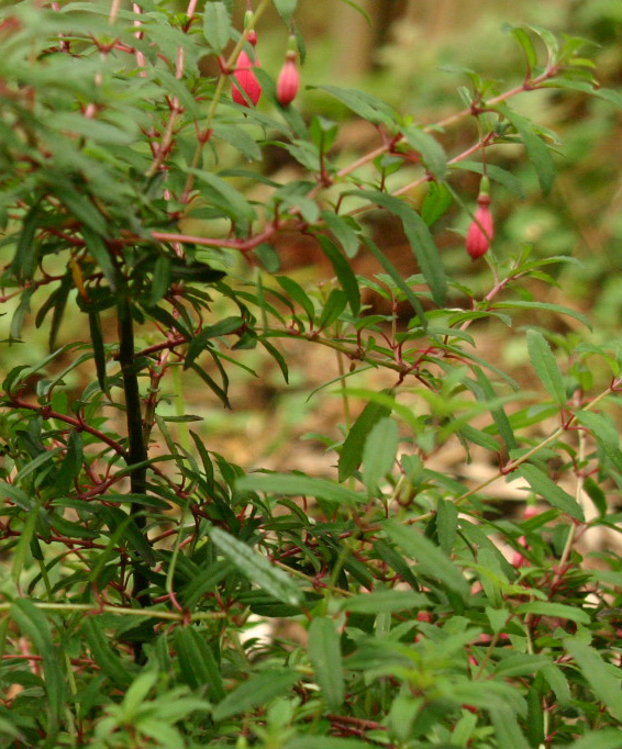 常緑低木。 葉は、対生、披針形、鋸歯がある。 花は、4個の萼片(主に赤色)と、4個の花弁(主に紫色)、 8個の雄蕊と1個の雌蕊からなり、葉腋から垂れ下がって咲く。 ブラジル原産。